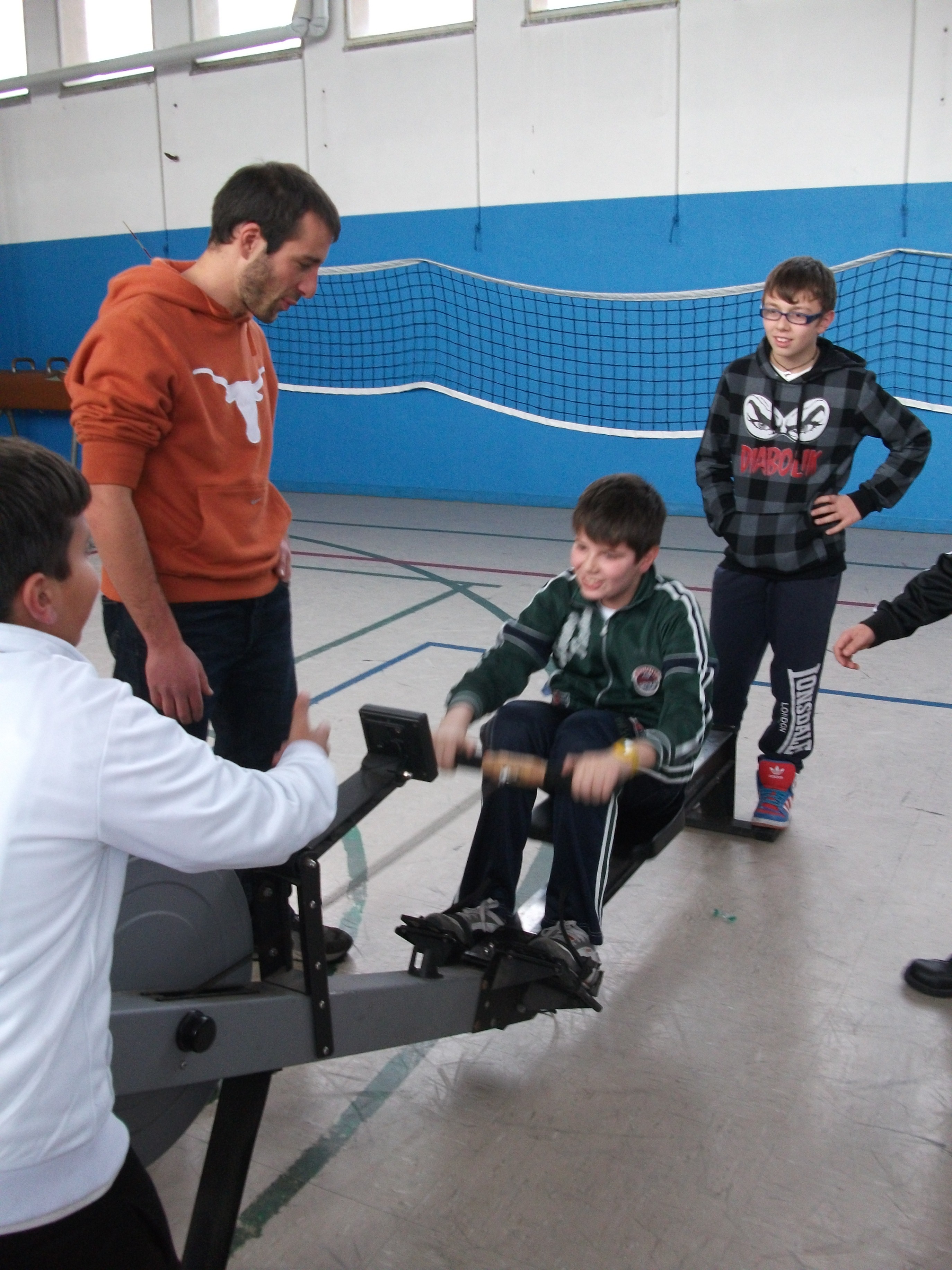 Qui è intervenuto il pluri-Campione Mondiale di Canottaggio Stefano Basalini che ha suscitato entusiasmo tra i ragazzi e richiesta di autografi, prima di passare all’illustrazione pratica della tecnica di remata.
