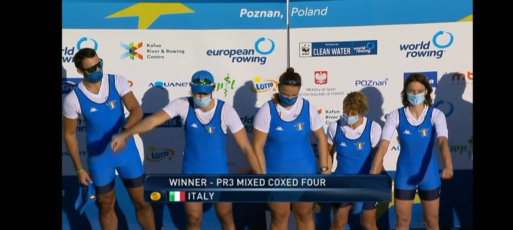 1. Italia (Cristina Scazzosi-S Canotteri Lago d’Orta, Alessandro Brancato-RYCC Savoia, Lorenzo Bernard-SC Armida, Greta Elizabeth Muti-SC Olona 1894, tim. Lorena Fuina-SC Rumon) 7.19.67,